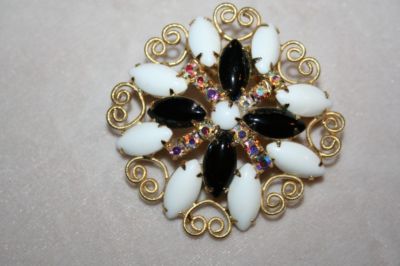 VINTAGE JULIANA AB RHINESTONE,MILK GLASS FLOWER BROOCH