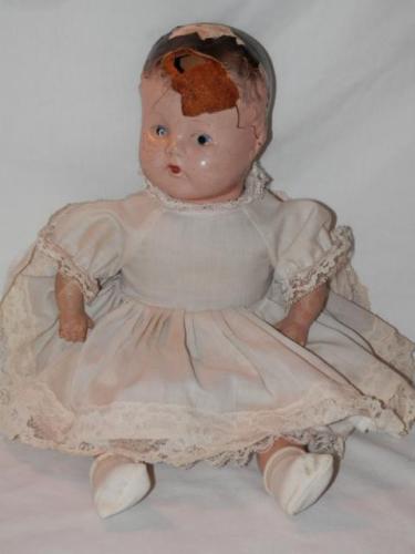 Title (ebay affiliate link): VTG/Antique Doll-Composition Head/Limbs-Cloth Body-Original Clothes/Socks-Damage