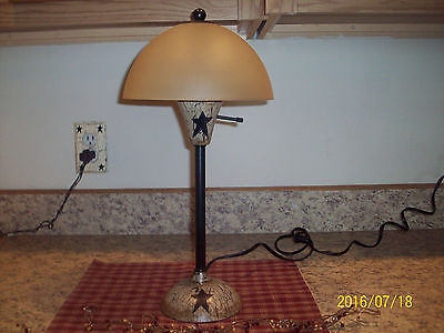 PRIMITIVE CRACKLE BLACK STAR NO WOOD LAMP WITH SHADE COUNTRY FARMHOUSE DECOR