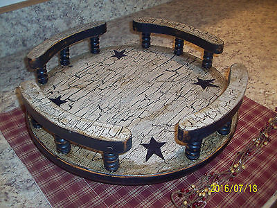 PRIMITIVE CRACKLE BLACK STAR WOOD LAZY SUSAN COUNTRY FARMHOUSE DECOR