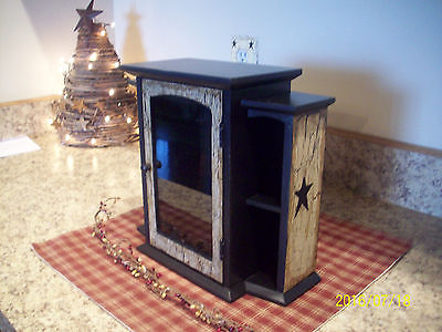 PRIMITIVE CRACKLE BLACK STAR WOOD CABINET GLASS DOOR COUNTRY FARMHOUSE DECOR