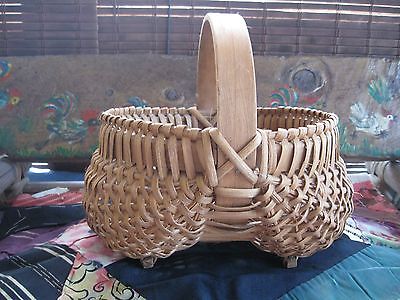 Title (ebay affiliate link): ANTIQUE~PRIMITAVE~SPLIT OAK BUTTOCKS BASKET~W/FEET~BERRY~EGGS~