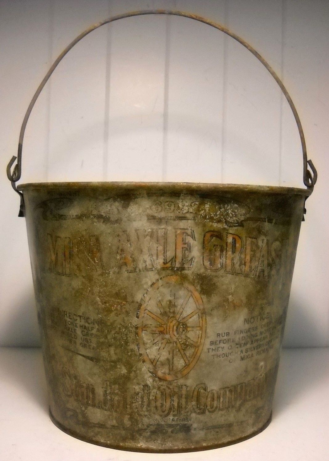 Title (ebay affiliate link): VERY OLD STANDARD OIL COMPANY MICA AXLE GREASE STEEL BUCKET FOR WAGON WHEEL SPOK