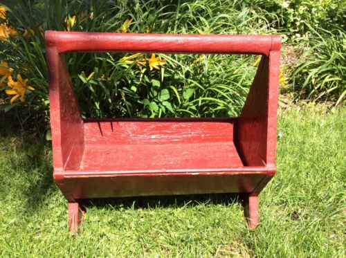 Title (ebay affiliate link): RED PRIMITIVE WOOD TOOL CARRIER BOX with HANDLE HOME MADE RUSTIC