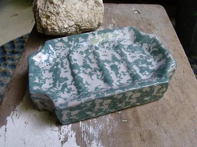 NICE Primitive Vintage Clay City Pottery Green Spongeware Stoneware Soap Dish IN