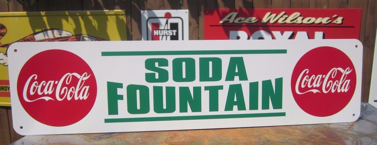 Title (ebay affiliate link): COCA COLA SODA FOUNTAIN SIGN RESTAURANT DRUG STORE COUNTER 5 AND 10 coke