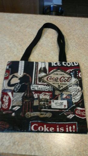 Title (ebay affiliate link): Preowned Collectible COCA-COLA Fabric Tote Bag 11"x11" Black w/Multi-colored