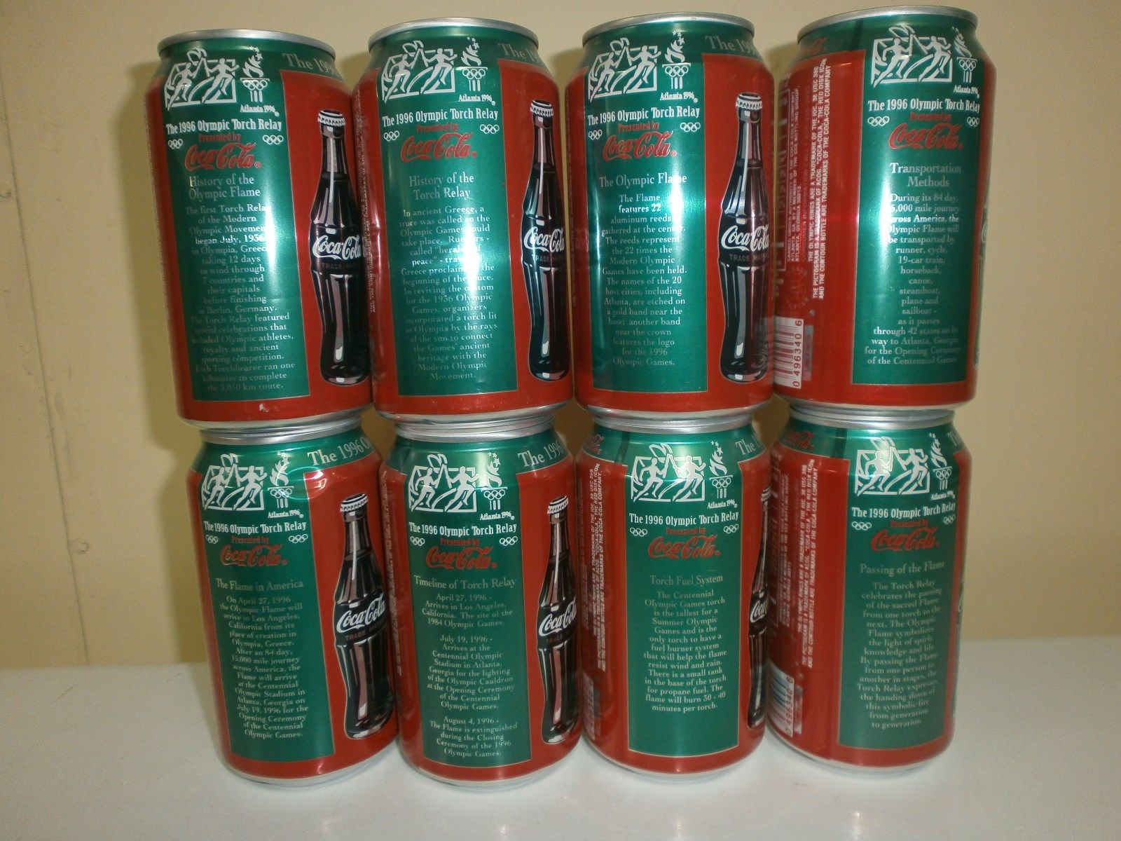 Coca Cola 8 cans set OLYPIC TOURCH RELAY from USA