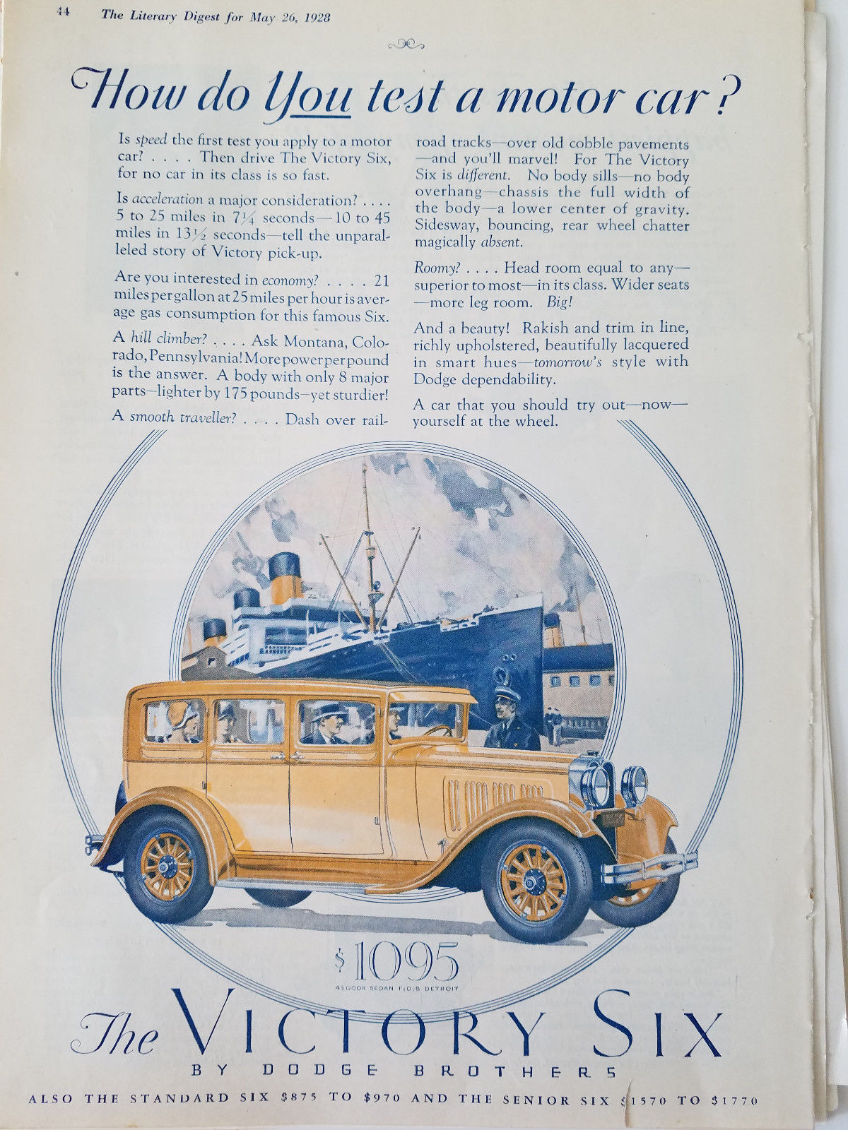 Title (ebay affiliate link): 1928 Dodge Brothers Victory Six Car Test a Motor Car Color Original Ad