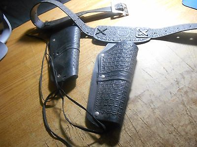 1969 Mattel Black Double Cap Gun Holster With Belt Fanner 50 Cowboy Toy RARE