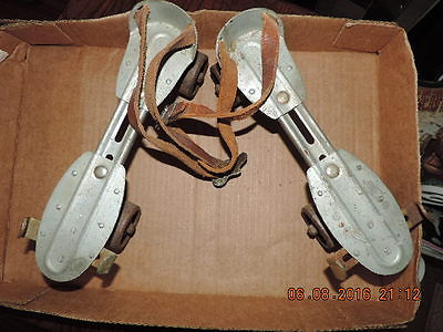 1 Pair of Vintage Chicago Roller Skates Metal Roller Skates Leather Straps OLD