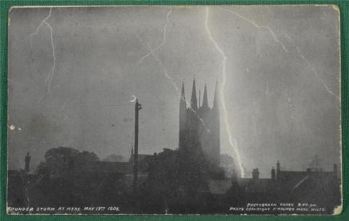 VINTAGE POSTCARD LIGHTNING THUNDER STORM AT MERE 1906 SOMERSET (A239)