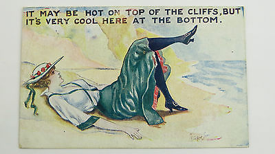 1916 Risque Vintage Comic Stocker Shaw Postcard Flapper Black Stockings Lingerie