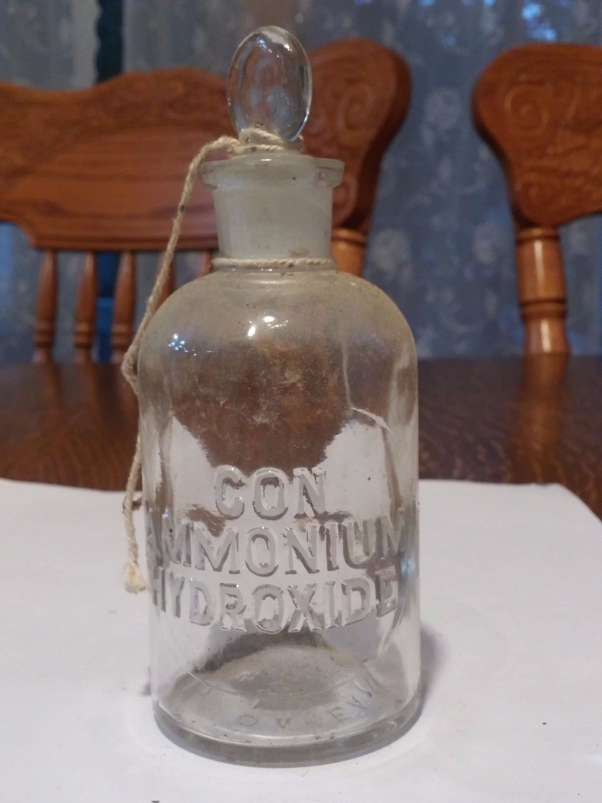 Title (ebay affiliate link): CON AMMONIUM HYDOXIDE 125 ml 4 oz Antique APOTHECARY CHEM EMBOSSED GLASS BOTTLE