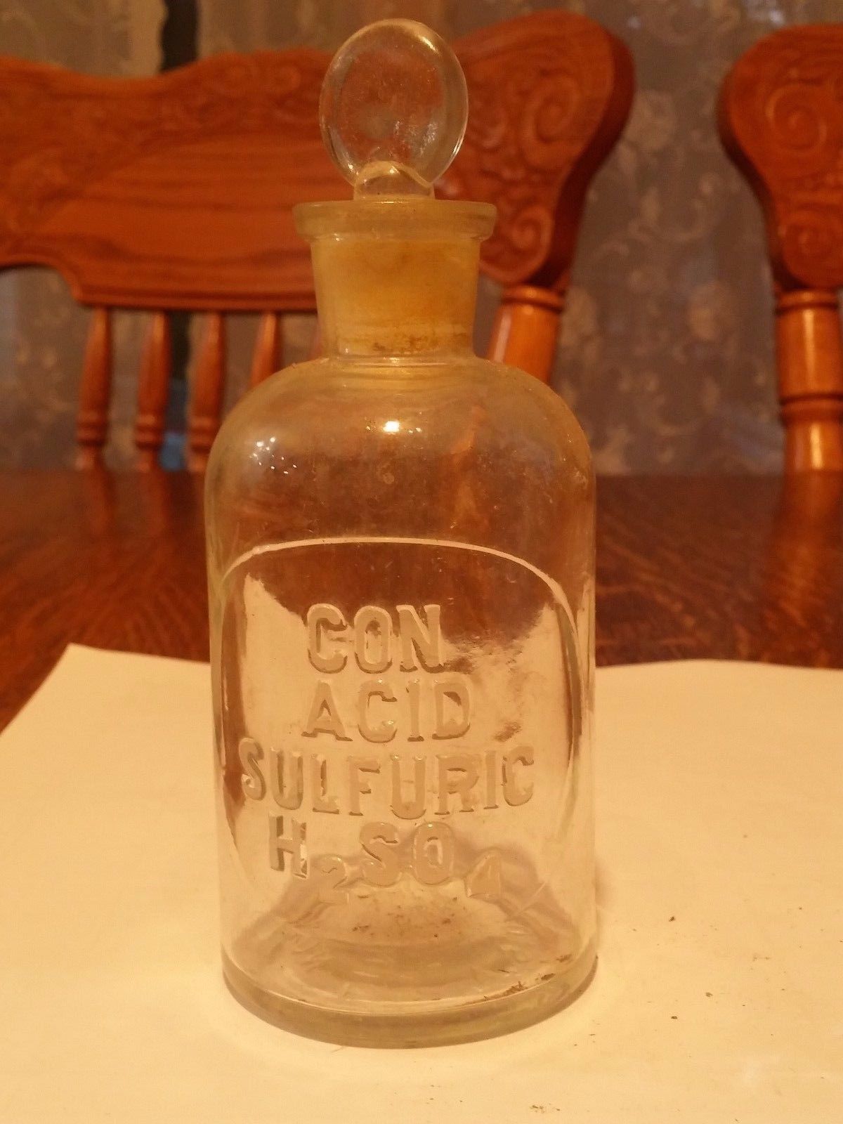 Title (ebay affiliate link): CON ACID SULFURIC 125 ml 4 oz Antique APOTHECARY CHEM EMBOSSED GLASS BOTTLE