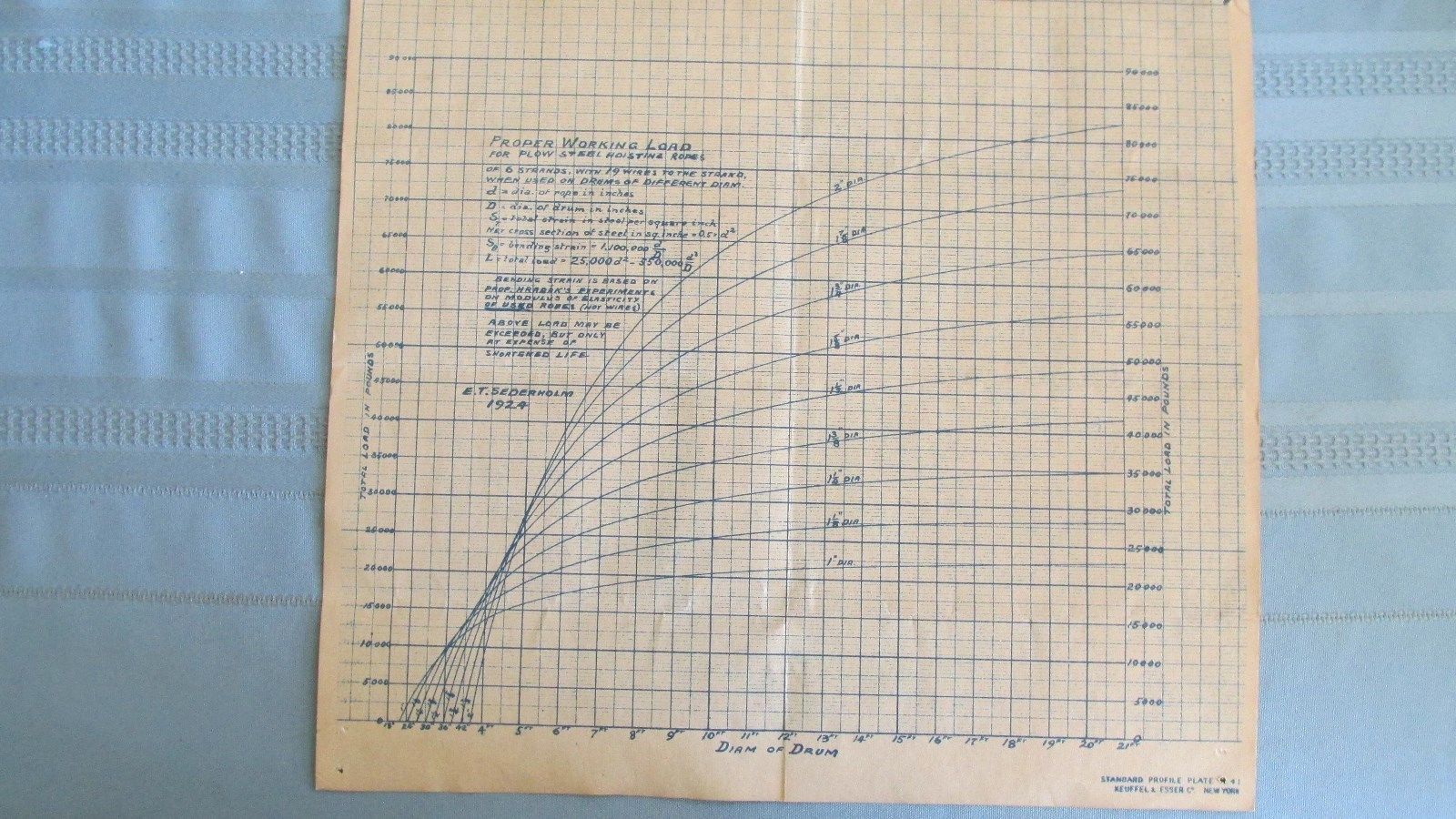 Title (ebay affiliate link): Original 1924 Diagram Wire Rope Working Load By Hoist Drum Size-Keuffel & Esser