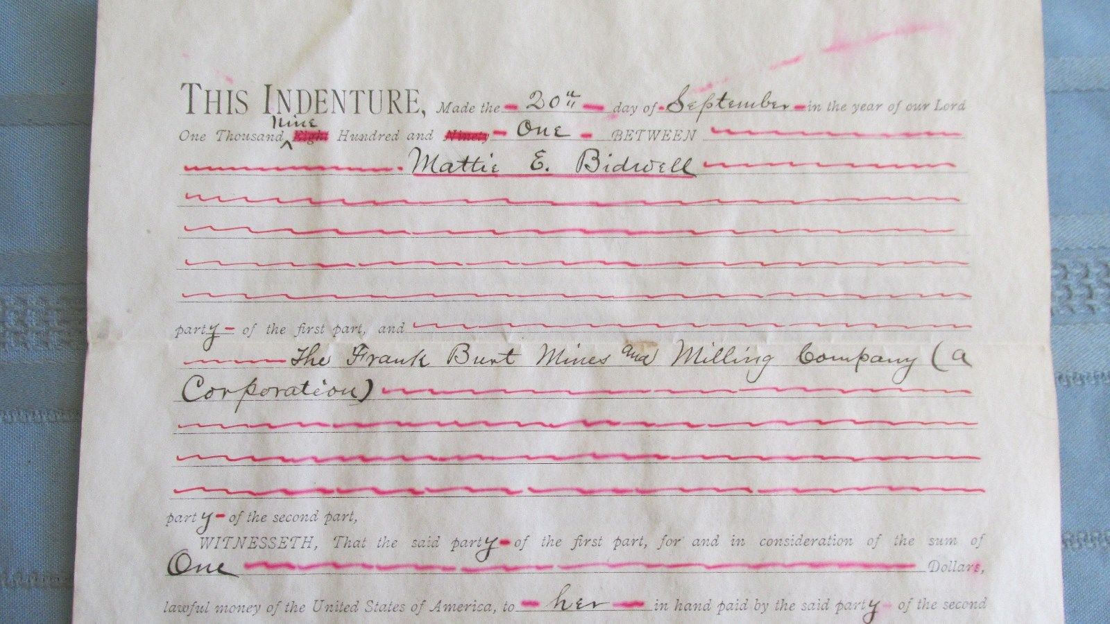 Title (ebay affiliate link): Cripple Creek Colorado 1901 Mining Deed-Bidwell Lode Claim-Mattie Bidwell