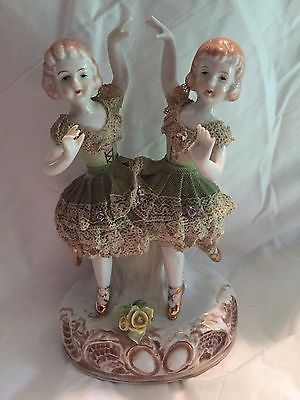 Vintage Lace Applied Gold Gilded Ballerina Porcelain Figurine