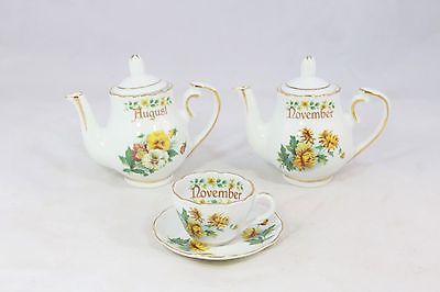 Vintage E & R Golden Crown November Tea Pot & Tea Cup August Tea Pot Bone China