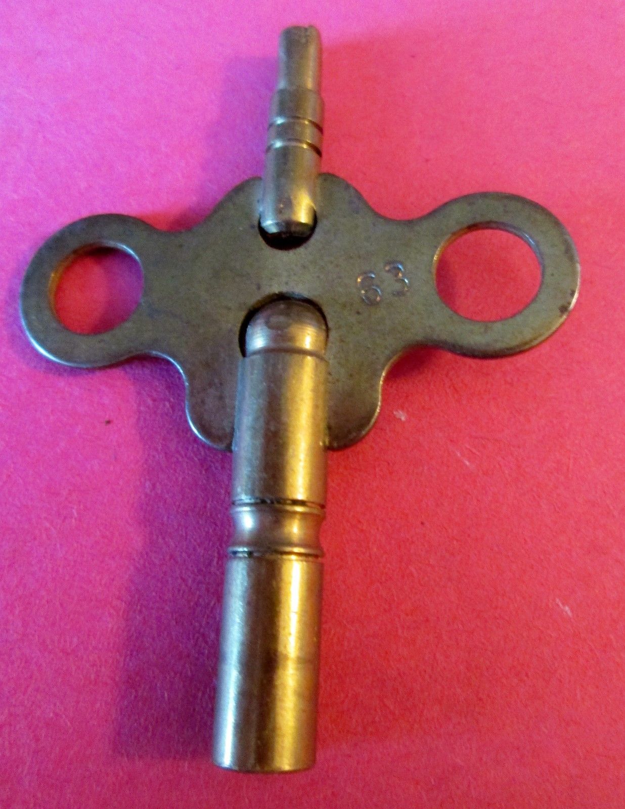 Title (ebay affiliate link): 1 Old Solid Brass 2 Sided Clock Key for Antique & Vintage Clocks Size 4/5