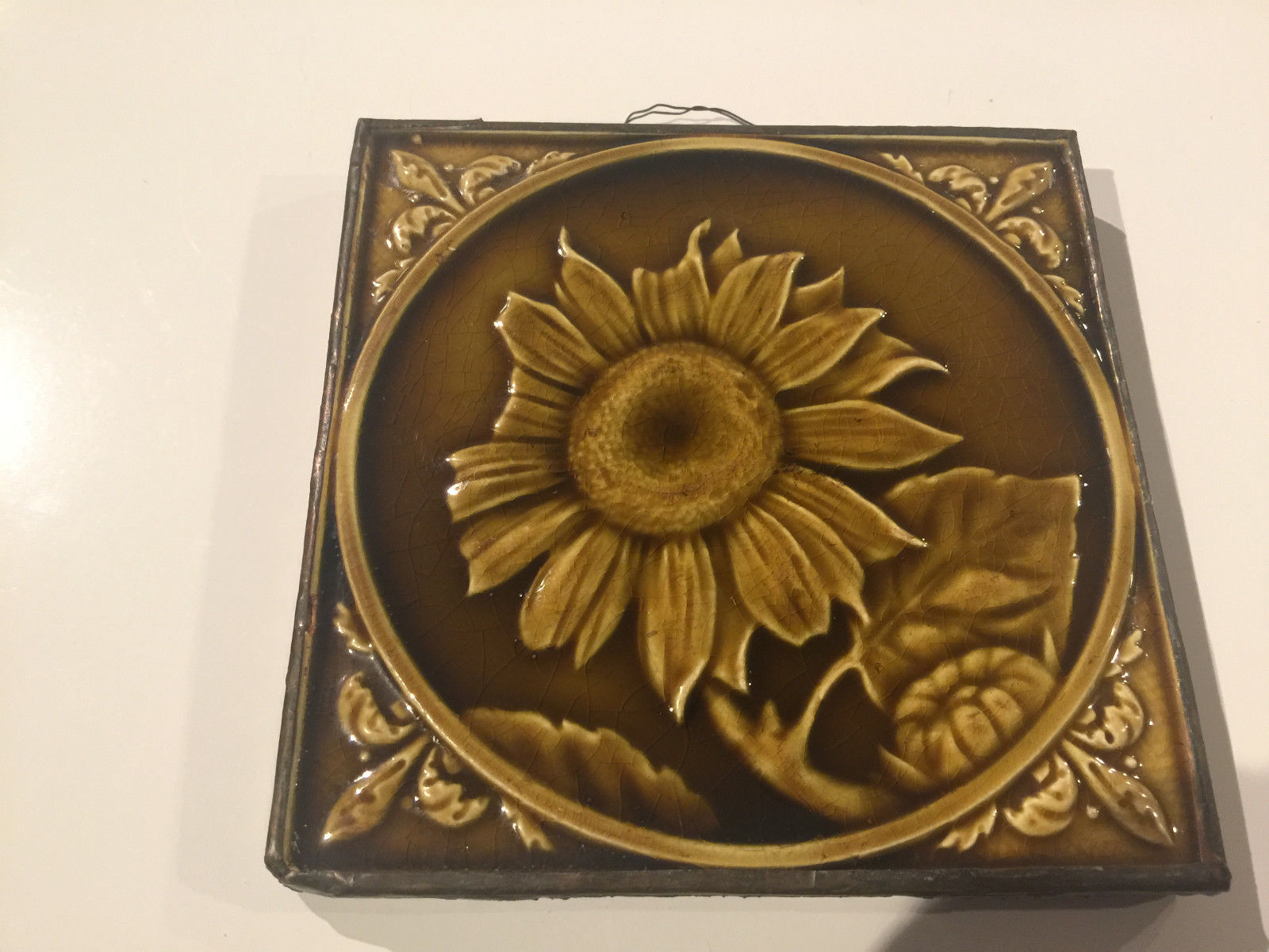 American Encaustic Majolica Relief TIle Flower Daisy Sunflower