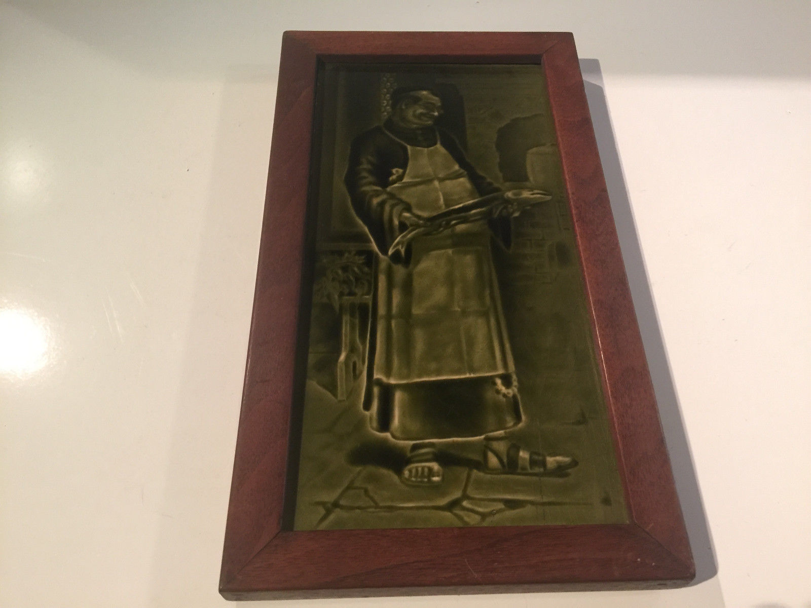 Framed Sherwin and Cotton Tile Plaque Monk Cook with Fish M 604