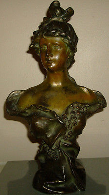 ANTIQUE METALWARE VICTORIAN WOMAN BUST HEAD STATUE