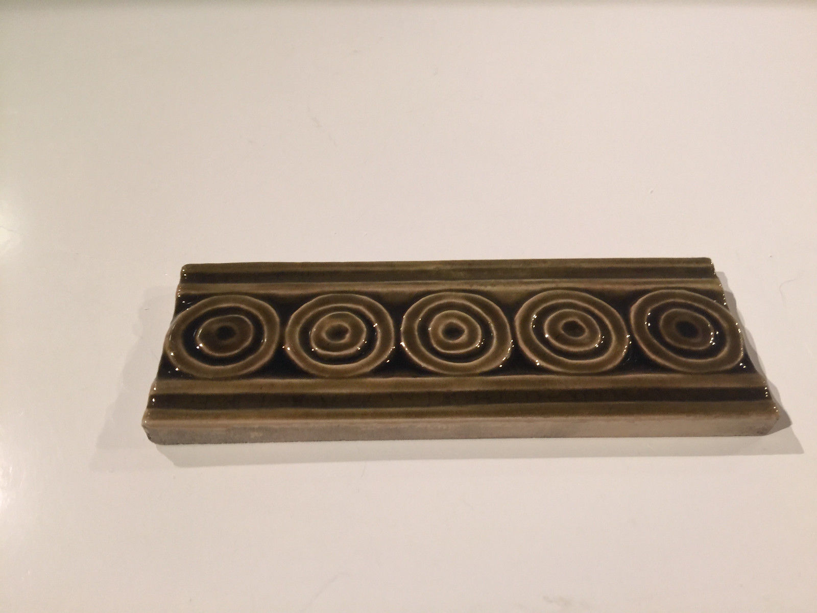 J & J G Low Majolica Relief Border Tile Spiral Design