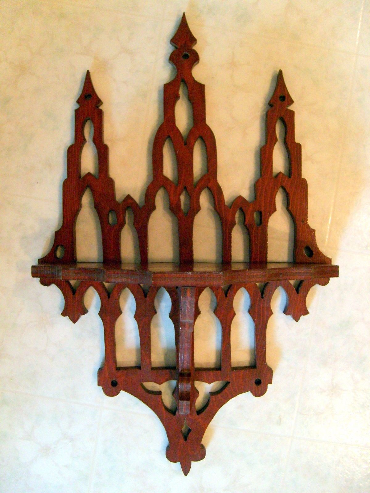 Vintage Victorian Gothic Scroll Cut Wooden Wall Shelf