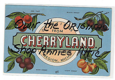 MICHIGAN postcard Greetings from CHERRYLAND Grand Traverse Region MI 1930's