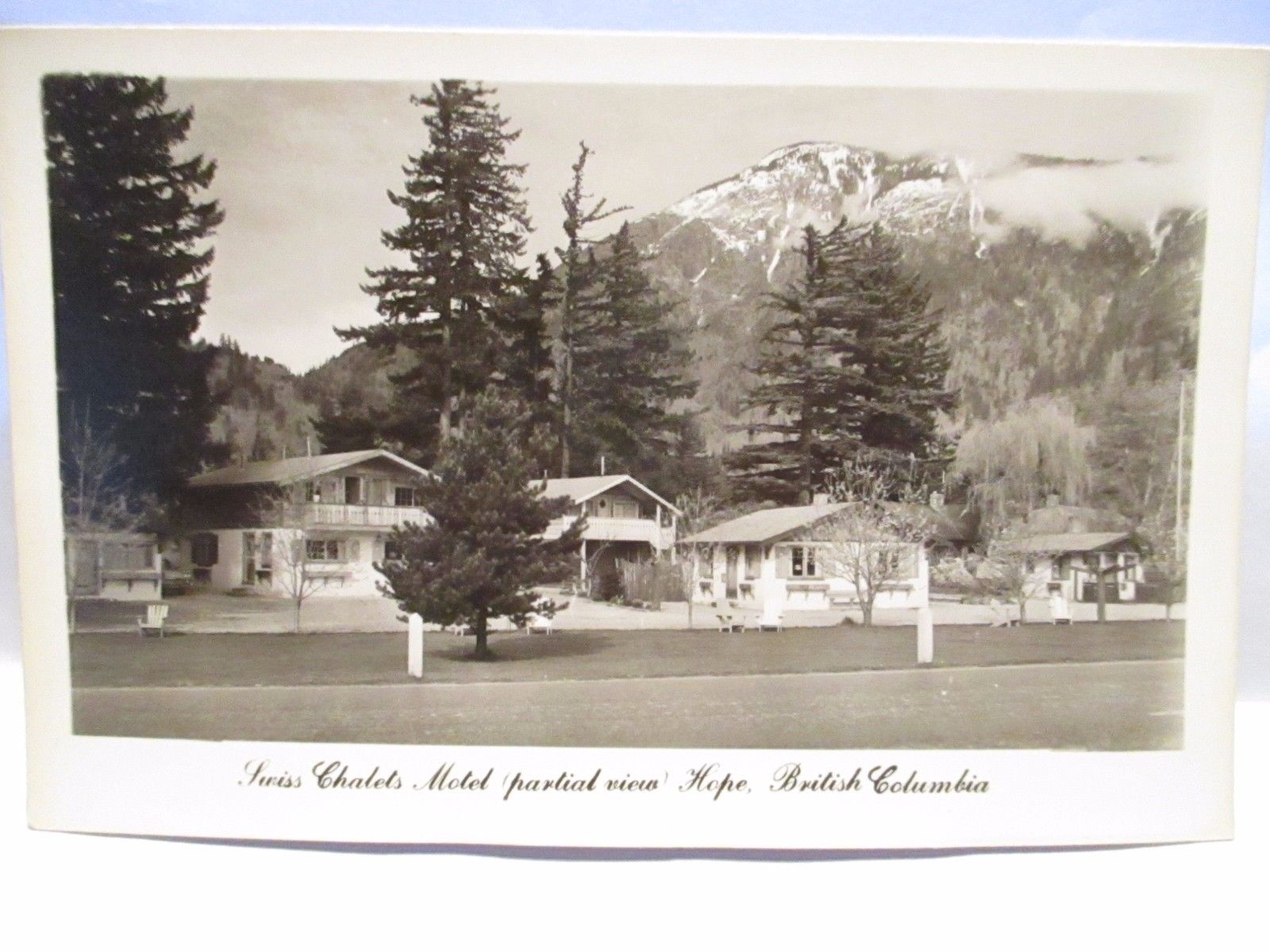 Title (ebay affiliate link): 1940 REAL PHOTO POSTCARD " SWISS CHALETS MOTEL " HOPE BC CANADA UNUSED