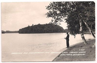 Title (ebay affiliate link): Shoreline Fishing Scene, Rainbow Lake Chain O`Lakes Waupaca WI RPPC 1956