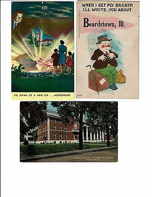 3 Card Illinois Lot, Champaign University, Mooseheart, Beardstown Pennant Comic!