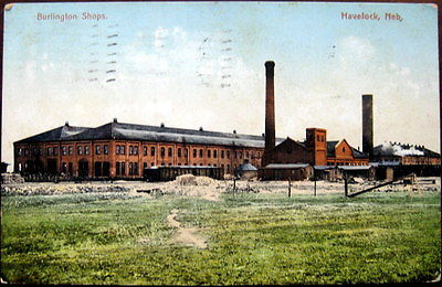 Title (ebay affiliate link): HAVELOCK, NEBRASKA: Burlington Route Railroad Shops View, 1910 pmk