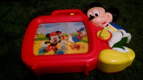Title (ebay affiliate link): 1970s Vintage Disney Mickey Mouse Wind-up Scrolling TV Toy