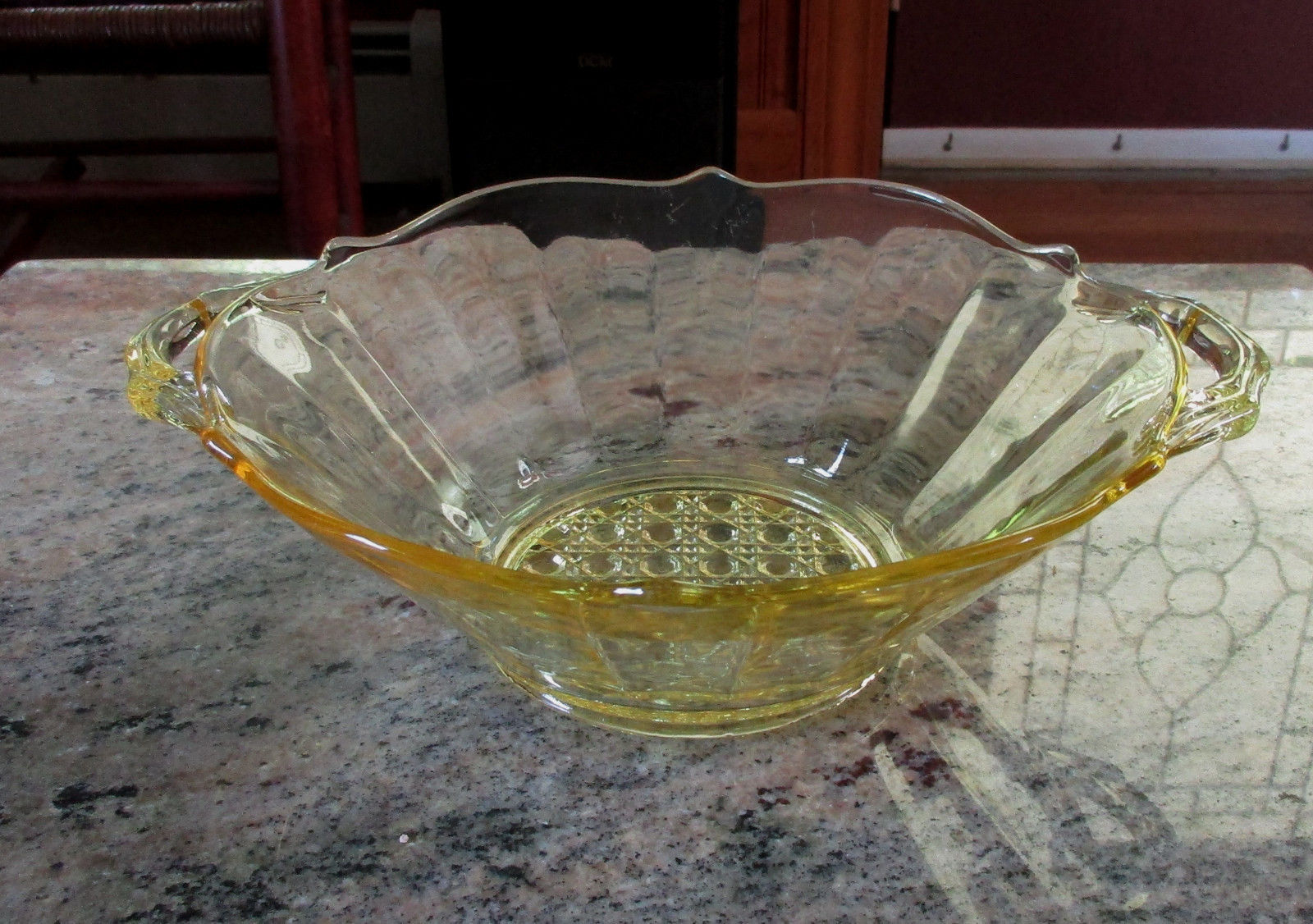 Lovely Vintage Yellow Depression Glass Two Handled Bowl
