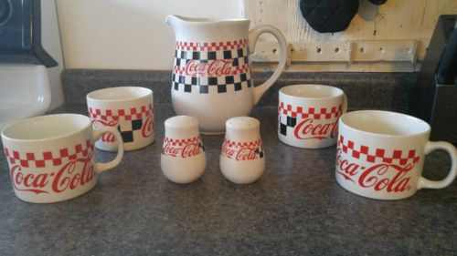 Title (ebay affiliate link): 7 Pc Coca Cola Kitchen Set Pitcher/Cups/Salt&Pepper Shakers