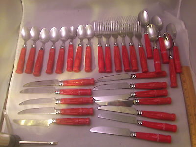 Title (ebay affiliate link): 31 Piece Set Red Handle Coke Coca Cola Flatware Silverware