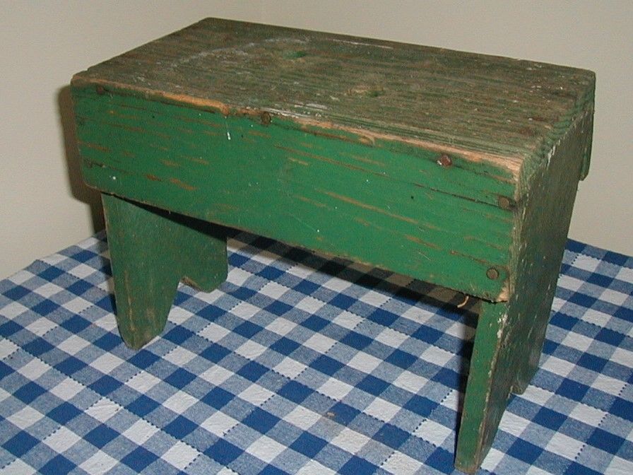 Title (ebay affiliate link): Primitive Old Antique Vintage Wooden Green Foot Stool Small Bench Green Paint