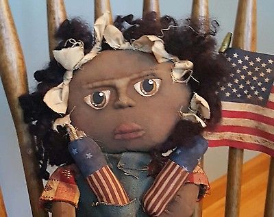 Title (ebay affiliate link): OOAK Primitive Black Americana Raggedy Doll Firecrackers patriotic Holiday Flag
