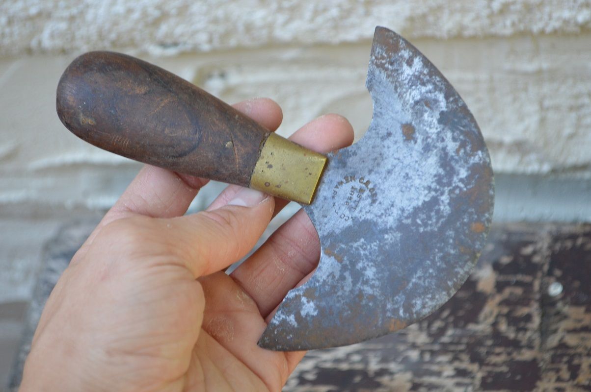 Antique Wood Handle Brass Hide Scraper Leather Tanning Fox Hog Hunting Tool USA