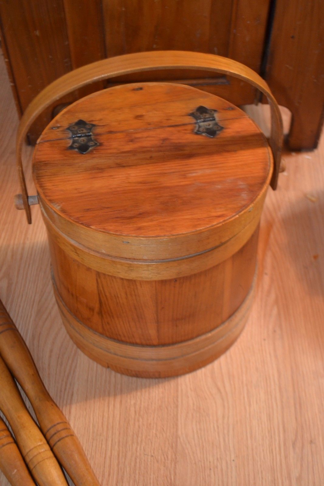 Title (ebay affiliate link): Antique / Vintage Primitive Wood Firkin Furkin Sewing Stand Wood Bucket