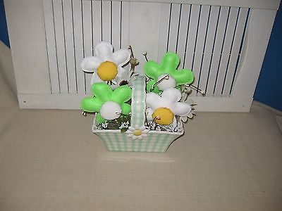 Title (ebay affiliate link): Handmade Primitive Shelf Sitter Floral Arragement,Daisies in Ceramic Basket