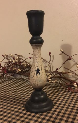 Title (ebay affiliate link): PRIMITIVE CRACKLE CANDLE HOLDER WOOD BLACK TAN COUNTRY DECOR STAR