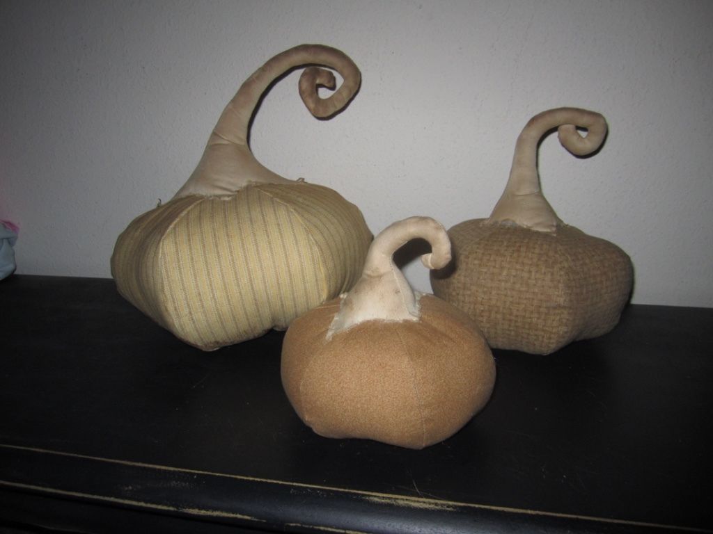 Title (ebay affiliate link): Primitive Pumpkins - set of 3 -Fall/Halloween - mustard - ticking