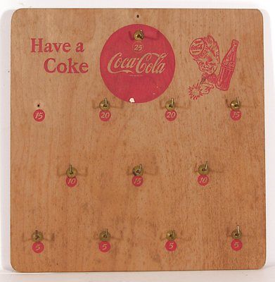 Title (ebay affiliate link): 1940's COCA-COLA ADVERTISING GAME BOARD - WALL MOUNT RING TOSS COKE GAME BOARD