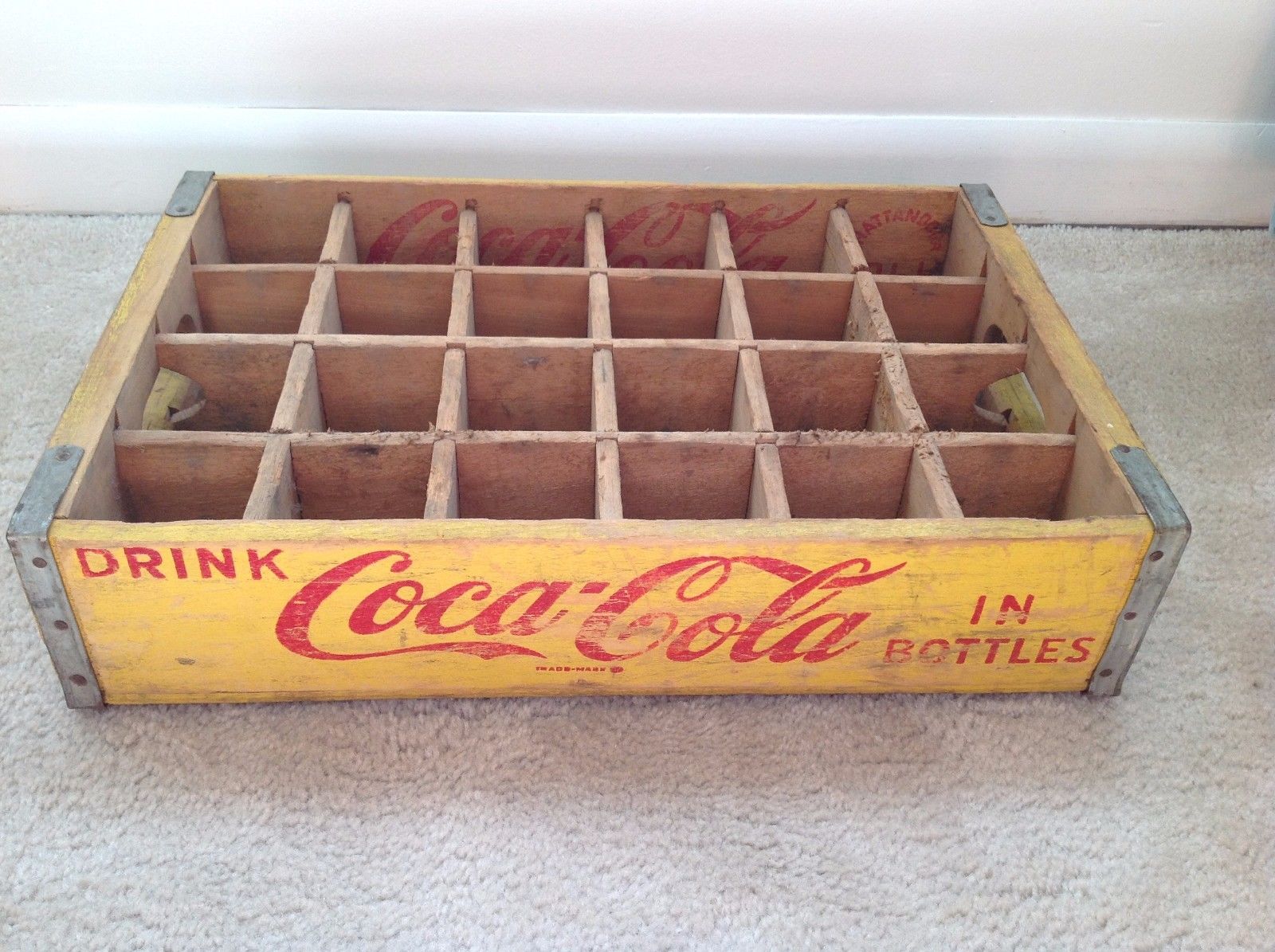 Title (ebay affiliate link): Vintage Coca Cola 24 Bottle Yellow Wooden Advertising Crate Chattanooga 1966