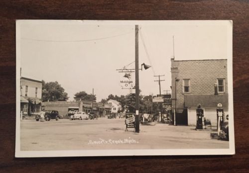 Title (ebay affiliate link): Swartz Creek, Michigan RPPC Postcard Mobil Gas Station, Stores, Coca-Cola Sign