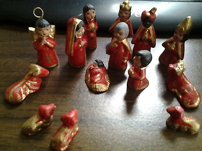 VERY VERY OLD CHINESE NATIVITY MINIATURE CHRISTMAS SET...14 PIECES!!!