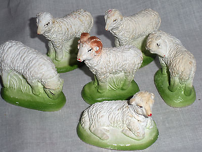 Title (ebay affiliate link): SIX 1940's - 50's CHALK PLASTER NATIVITY ANIMALS ~ SHEEP, LAMB, RAM